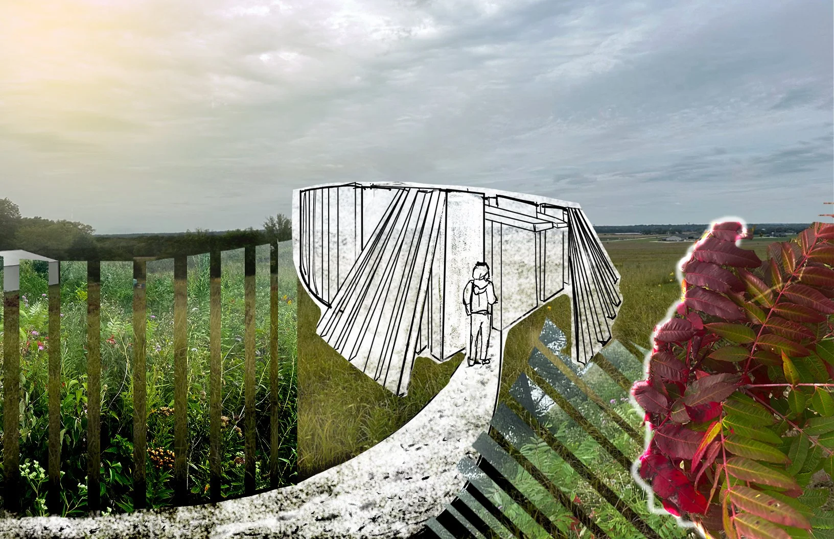 During site visits, personal photos were used to create collages to emulate the “feeling” of the project design goal. By combining site photos with design intentions, these mark the beginning of the conceptual design phase for this assignment.